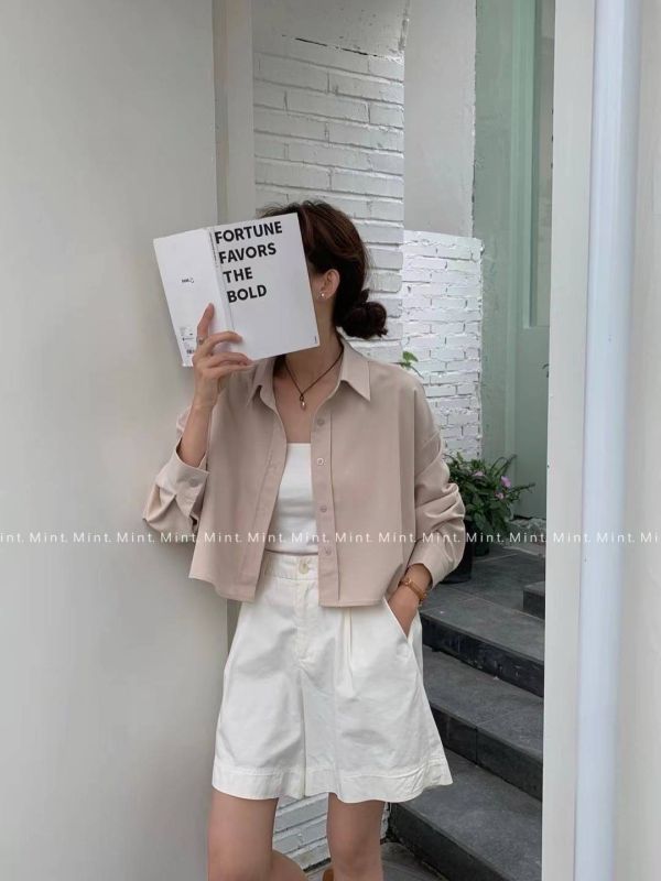 後交叉綁帶質感壓紋襯衫,Qubiee Shop